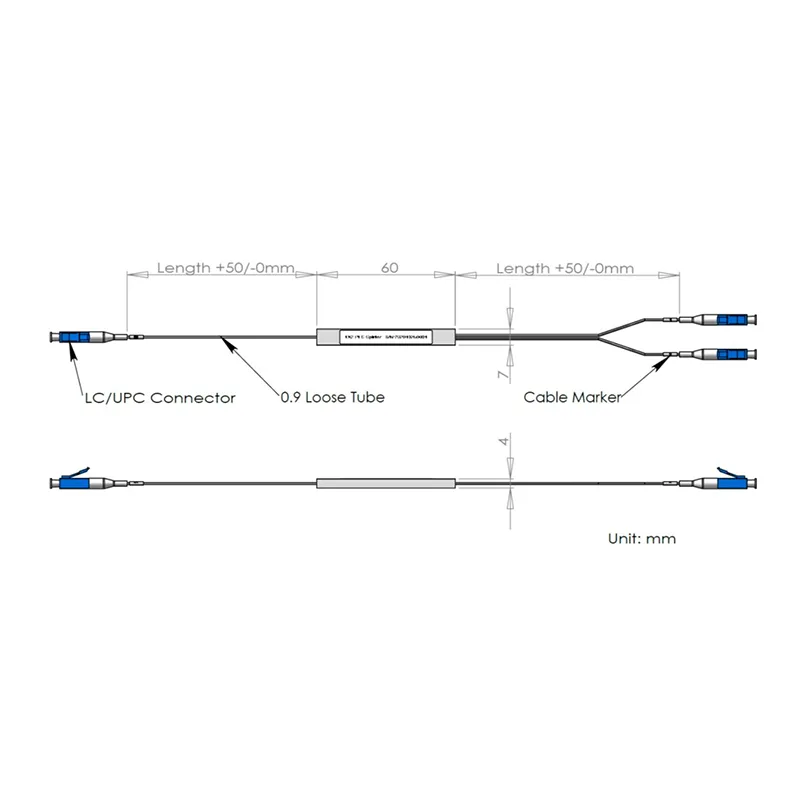 1 × 2 PLC Splitter en acier de tube en acier 60x7x4 mm, avec 900 μm de tube lâche 1,0 m, connecteur LC / UPC.Spécifications de performance:ParamètresSymboleCaractéristiquesUnitéNuméro de canalCh1 × 2Longueur d'onde de fonctionnement1260 ~ 1650nmTest de la ......