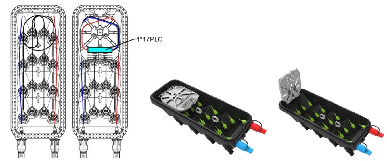 5. L'intérieur est équipé d'un séparateur FBT 1x2 + séparateur PLC 1x16 ou d'un séparateur PLC 1x17.