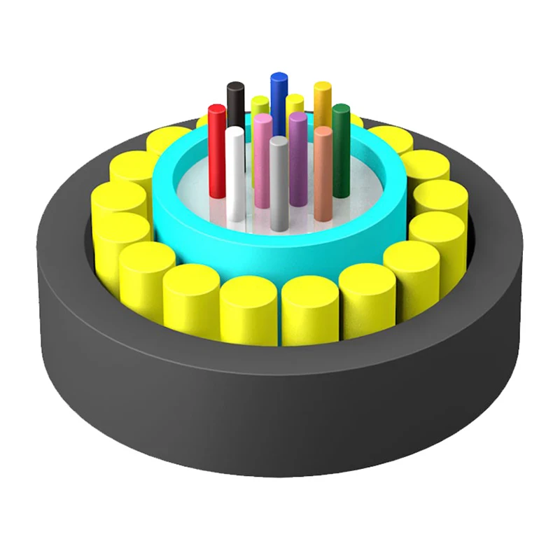 Les fibres, monomode ou multimode, sont positionnées en mode tube lâche du module élevé PETG. Les tubes sont remplis d'un composé de remplissage résistant à l'eau. Au-dessus du tube, un matériau de blocage d'eau est appliqué pour garder le câble étanche. Et emballage des barres en plastique renforcé de fibres (FRP). Le câble à fibre optique anti-RODING UNI-TUBE Éclairage non métallique est complété par une gaine en polyéthylène (PE).